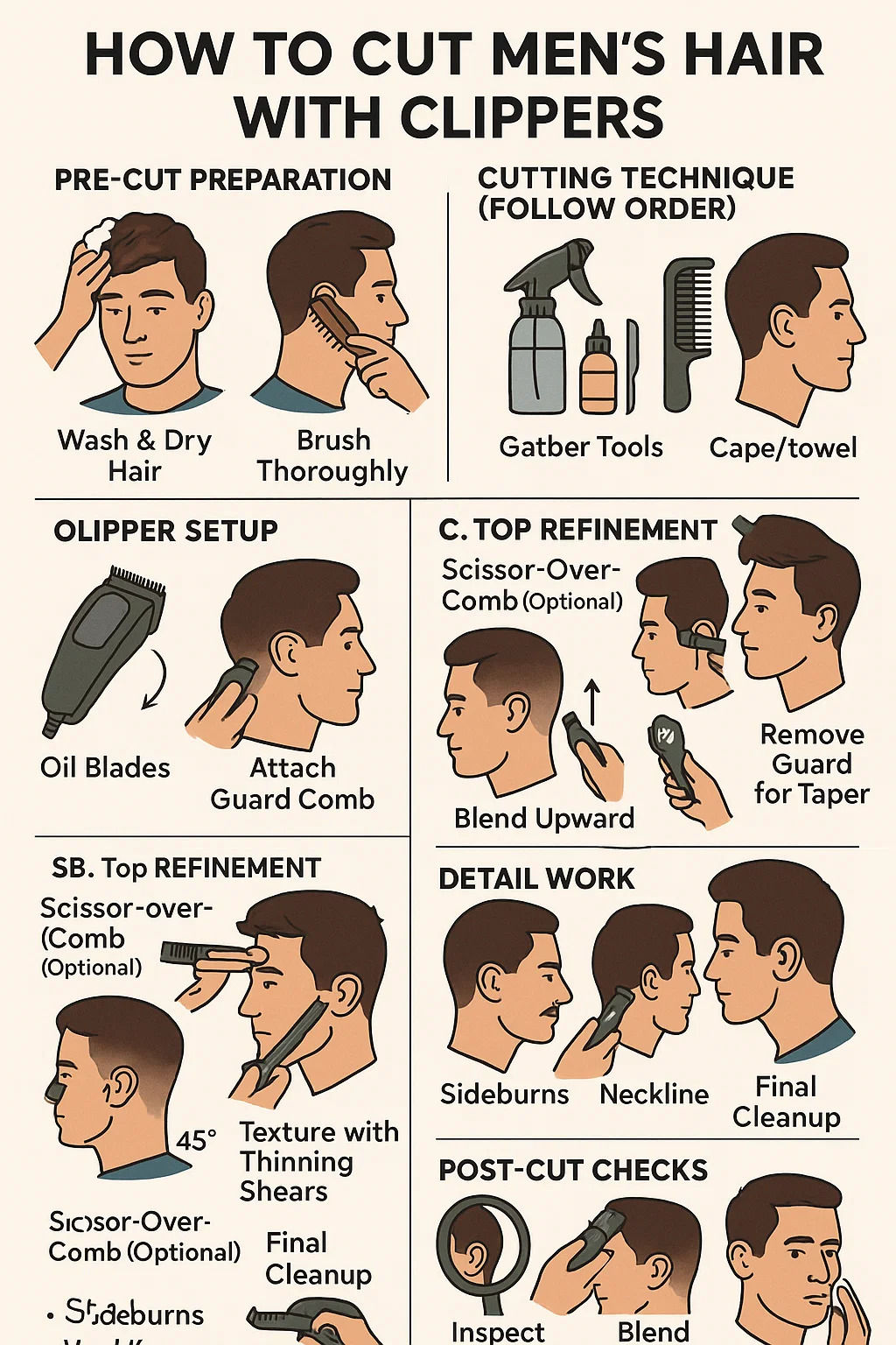পুরুষদের চুল কাটাতে এখানে একটি ধাপে ধাপে গাইড রয়েছে চুল ক্লিপারস ::